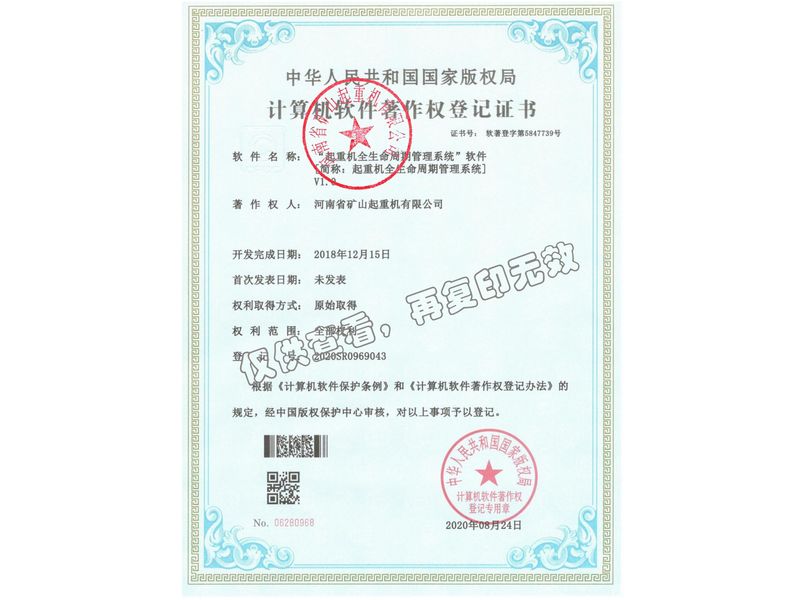 計算機軟件著作權登記證書